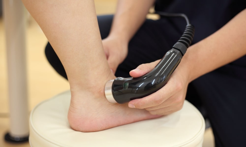 施術は、最初に患部の鎮痛や炎症を抑える目的で手技療法や物理療法(超音波やハイボルテージ)を重点的に行います。
